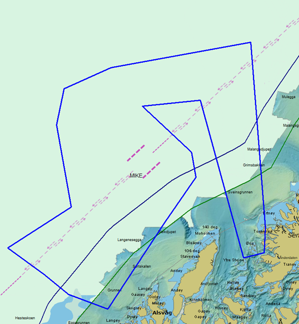 Fareområde Sjø, “Mike” – aktivt 20:00-04:00